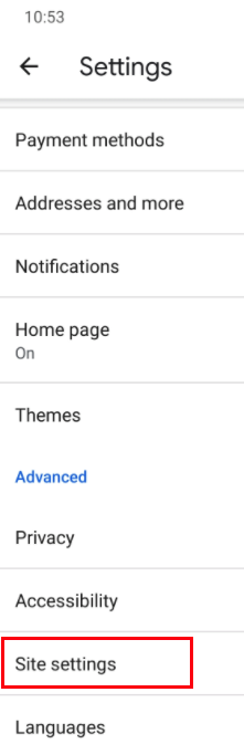 In the Settings menu, tap on Site Settings.