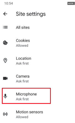 Now, tap on the Microphone option.