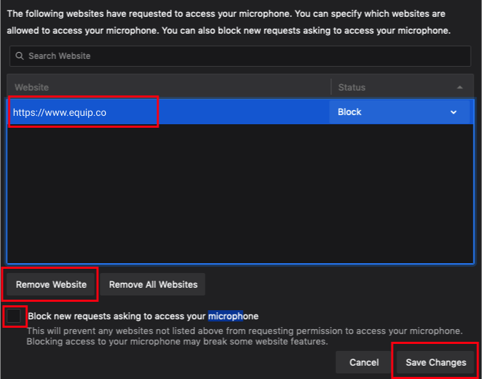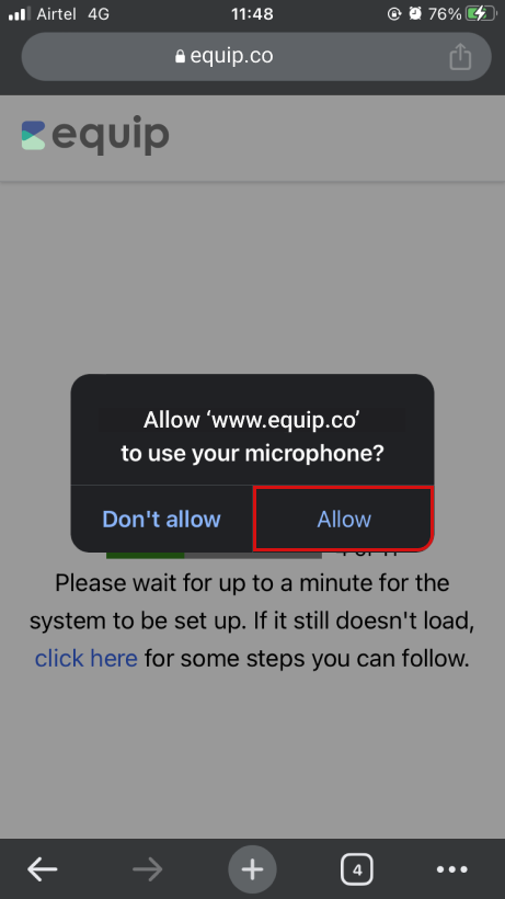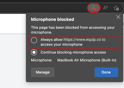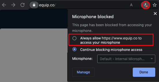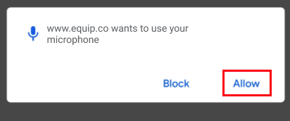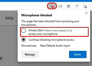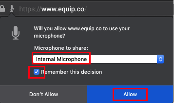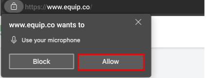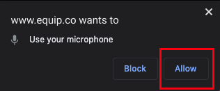 Click the Check Mic button below and then click on Allow when “www.equip.co” prompts you for your microphone permission.