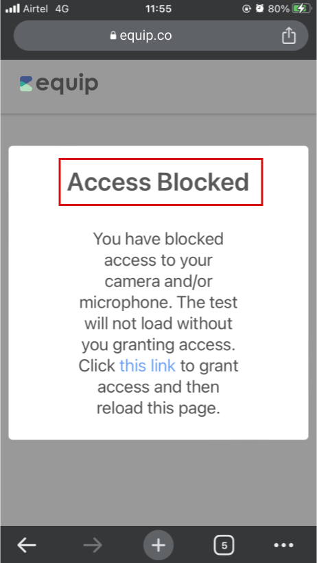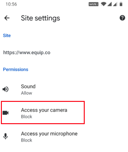 That 's it! You have now allowed Equip to seek access to your Camera. Click the Check Camera button below. When you get the prompt at the top, click on Allow.