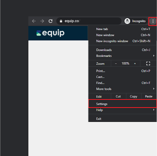 If you see equip.co under Block, click on the Delete icon at the right to unblock Equip.