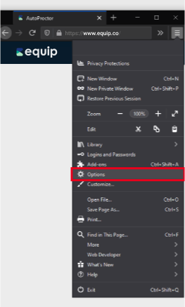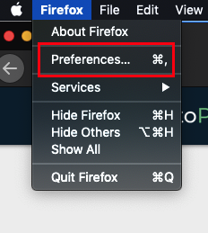 Click on Firefox at the top left of your screen and then click on Preferences.