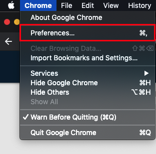 Click on Chrome at the top left of your screen and then click on Preferences.