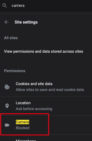 You should now see the Camera option highlighted. It may say Blocked or Ask Before Accessing below the Camera text. Click on the option.