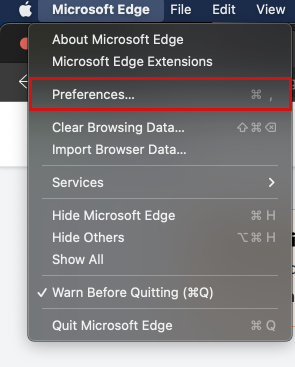 Click on Microsoft Edge at the top left of your screen and then click on Preferences.